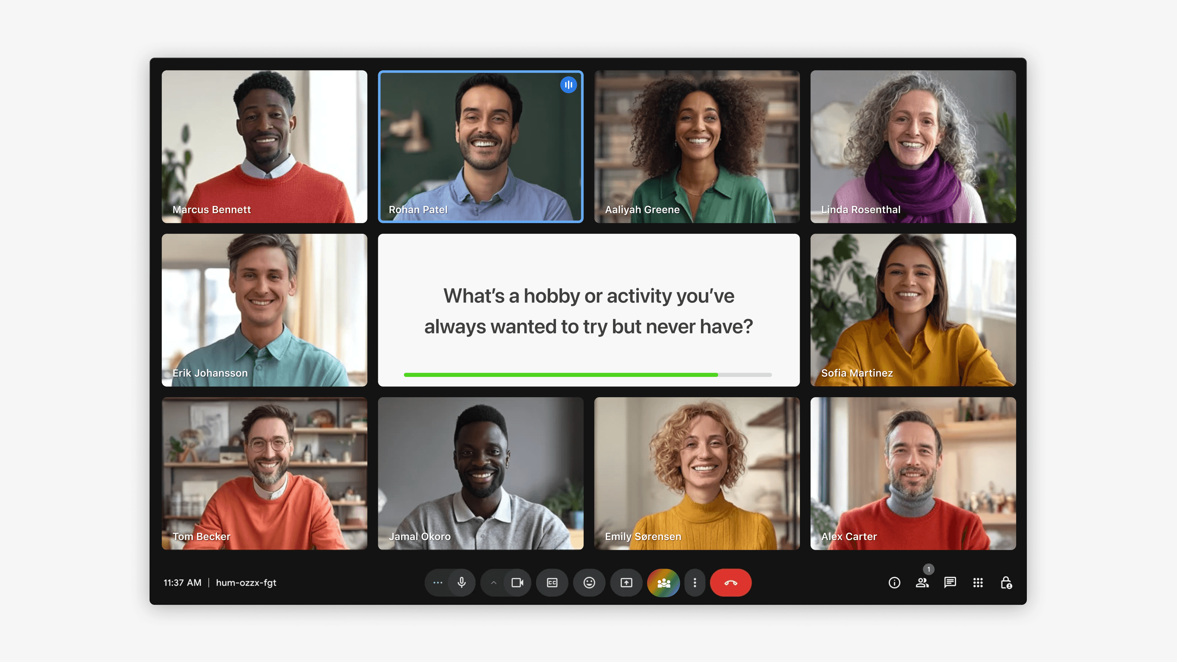 Most icebreakers become a quiet stare at a single question slide. People are so busy crafting their answer and bracing for the spotlight that they barely look at each other.