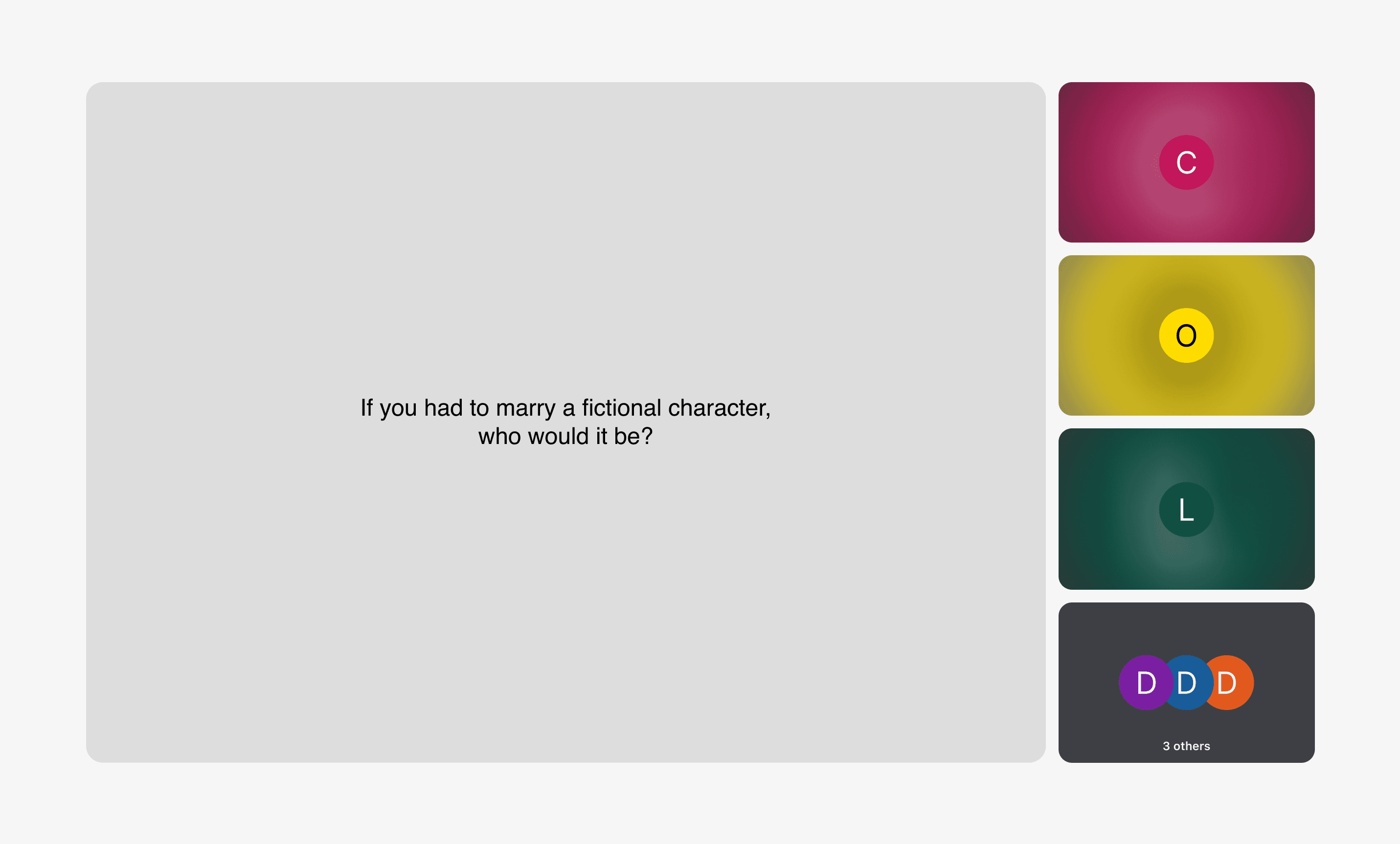 Icebreakers shouldn’t feel like pop quizzes or punchline contests. We needed a playful, low-pressure environment where personality can come through in more than just spoken words.